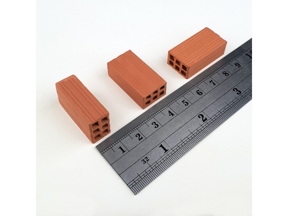 100 Unidades de Ladrillo Hueco doble en miniatura (Escala 1/10) de arcilla roja