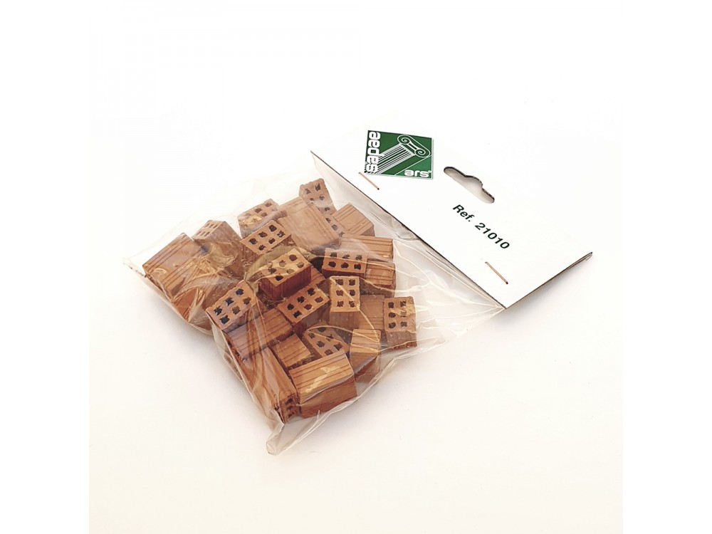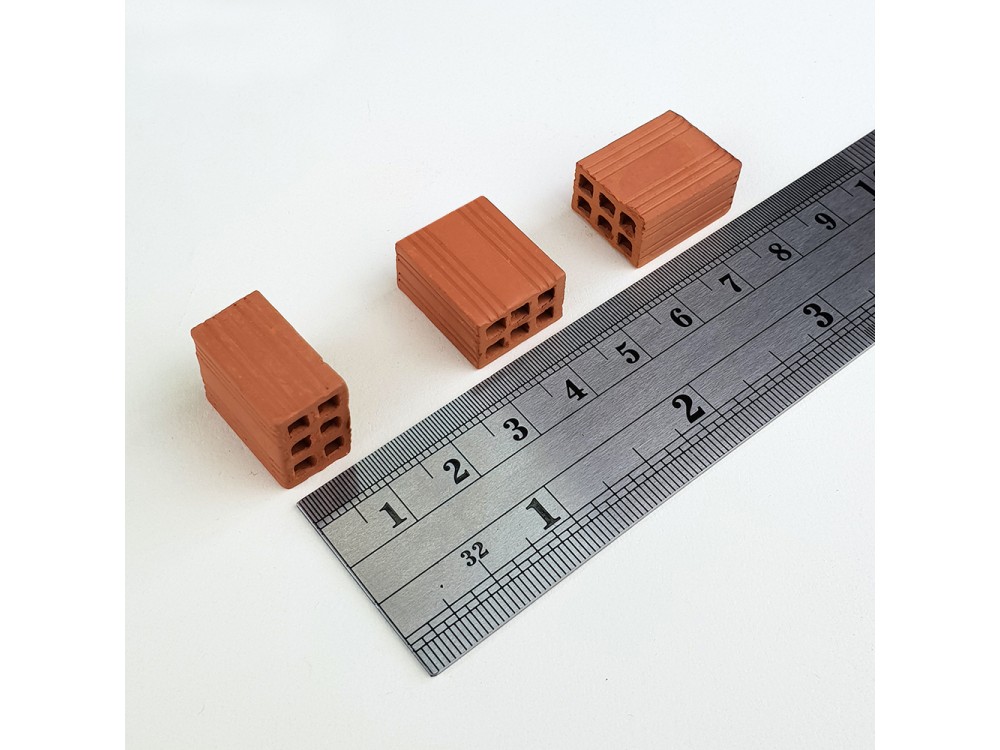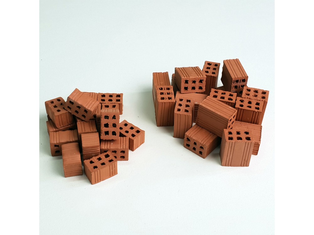 25 piezas (13 + 13) de ladrillo hueco doble en miniatura (Escala 1/10) de arcilla roja.